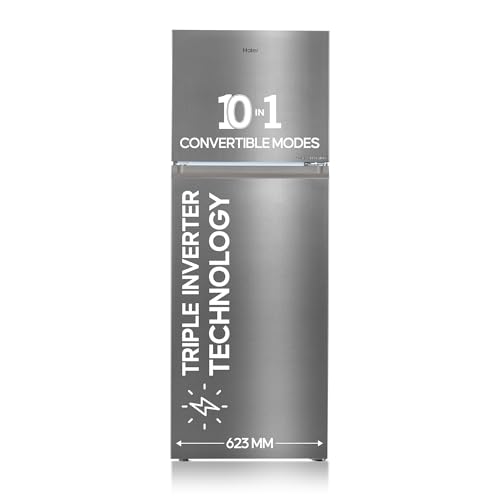 Haier 328 L 3 Star Frost Free Top Mount Double Door Refrigerator | Convertible 10-In-1 | Triple Inverter & Fan Motor Technology | Twist Ice Maker (Hef-333Ts-P, Inox Steel)