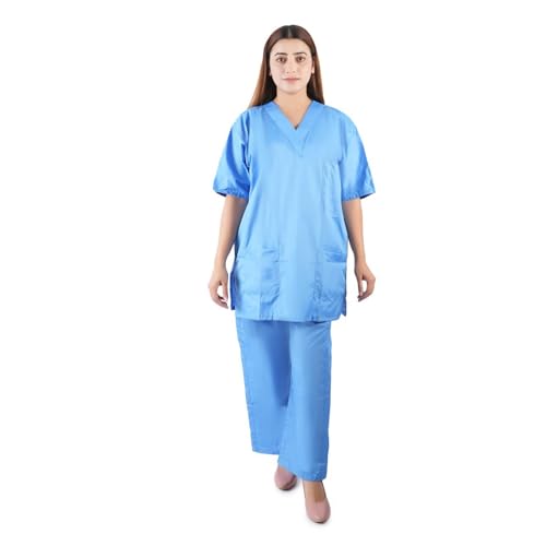 Heal Harbor Comfort Scrub Suit For Women – 5-Pocket Set With V Neck Top & Bottom, Half Sleeves, Breathable Fabric – Durable Uniform For Doctors, Nurses, And Dentists In Sky Blue (2Xl, Blue) is available on Amazon at best discounted online price. Original of this product is ₹ 1499.0. You can buy this product at discounted rate ₹ 206.