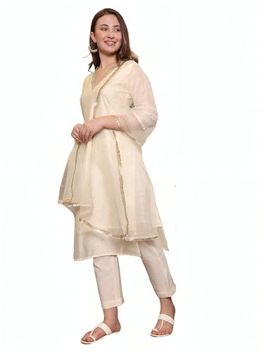 - Complete Stylish Set: Includes Chanderi pant bottom and lightweight net dupatta with embroidered border for a graceful finish. Note:- The Product May Vary From The Images Due To Various Reasons Like Monitor Setting, Photographic Lighting Sources Or Handiwork & Craftmanship.