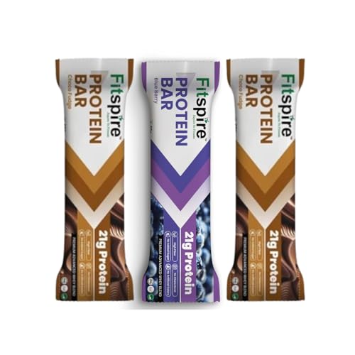 Fitspire Blueberry & Choco Fudge Protein Bar | 21G Protein With Premium Advanced Whey Blend | High Protein & Fibre | Cholesterol-Free, No Artificial Colours | Healthy Snack & Breakfast Bar – Pack Of 3 is available on Amazon at best discounted online price. Original of this product is ₹ 595.0. You can buy this product at discounted rate ₹ 199.