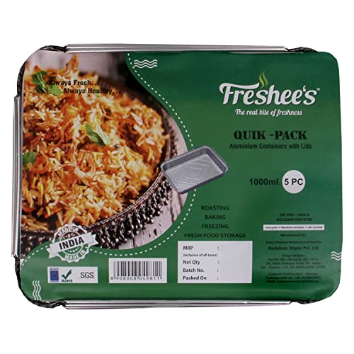 Freshee 1000Ml Disposable Aluminium Foil Containers With Lid For Food Storage Baking Roasting Freezing, Pack Of 10 Foil Containers, Oven Safe is available on Amazon at best discounted online price. Original of this product is ₹ 382.0. You can buy this product at discounted rate ₹ 7.