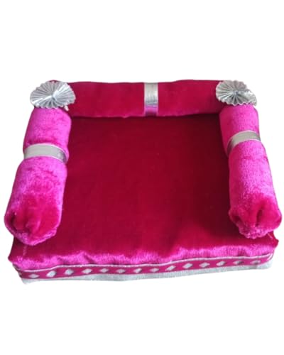 Laduu Gopal Sofa, Decorative Velvet Cushioned Figurine Seat, Hot Pink With Silver Trim, Traditional Religious Home Decor is available on Amazon at best discounted online price. Original of this product is ₹ 200.0. You can buy this product at discounted rate ₹ 20.