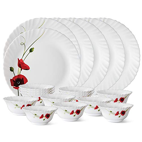 Larah By Borosil Glass Red Carnationthali Set (White) – 18 Pieces