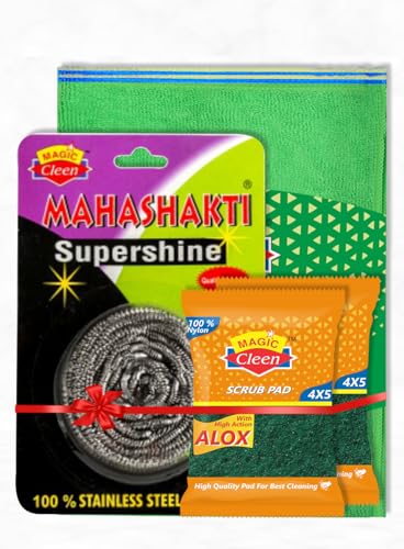 Magic Cleen Microfibric Cloth Plain 40 * 40Cm (Pack Of 5 (Mahashakti) Supershine Stainless Steel Scrube 12Gram And 2 Nylon Scrub Pad Combo Pack is available on Amazon at best discounted online price. Original of this product is ₹ 585.0. You can buy this product at discounted rate ₹ 119.