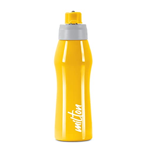 Milton Active 750 Stainless Steel Water Bottle With Spout Mouth 620 Ml, Single Walled, Isi Certified I Leak Proof Lid, Rust Proof I For School, Office, Gym I Yellow