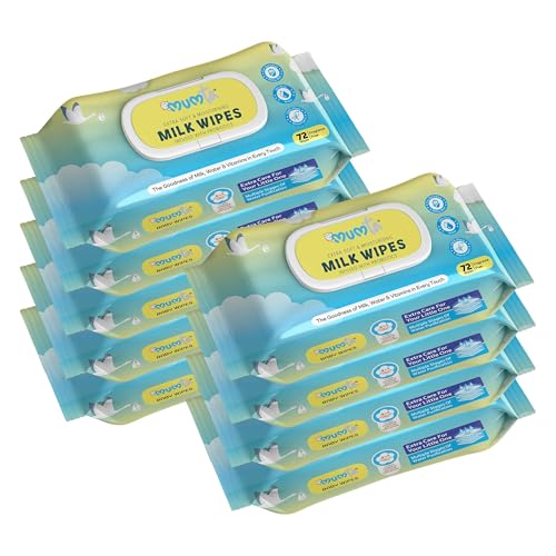 Mumta Milk Baby Wipes | With 99% Pure Water, Milk And Probiotics- 648 Wipes| Plant Based Fabric For Sensitive Skin| Prevents Irritation & Rashes.(72 Each, Pack Of 9) is available on Amazon at best discounted online price. Original of this product is ₹ 2691.0. You can buy this product at discounted rate ₹ 275.
