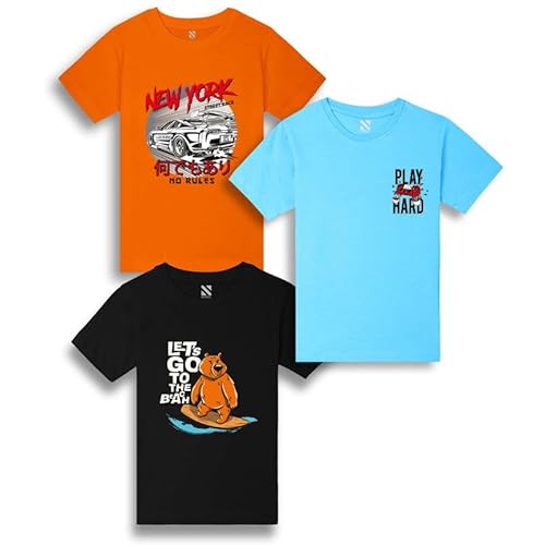 Nusyl Boys Sky Blue & Black & Orange Multi Text Printed Half Sleeves T-Shirt – Pack Of 3 is available on Amazon at best discounted online price. Original of this product is ₹ 2699.0. You can buy this product at discounted rate ₹ 170.