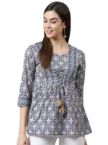 Yuvvik Women’S Navy Blue Cotton Top | Geometric Printed Short Kurti Style Shirt | Stylish For Ladies | Peplum-Inspired Regular Fit Cotton Frock Top is available on Amazon at best discounted online price. Original of this product is βΉ 2499.0. You can buy this product at discounted rate βΉ 449.